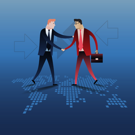 世界地図上の握手 のイラスト素材 ベクタ Image