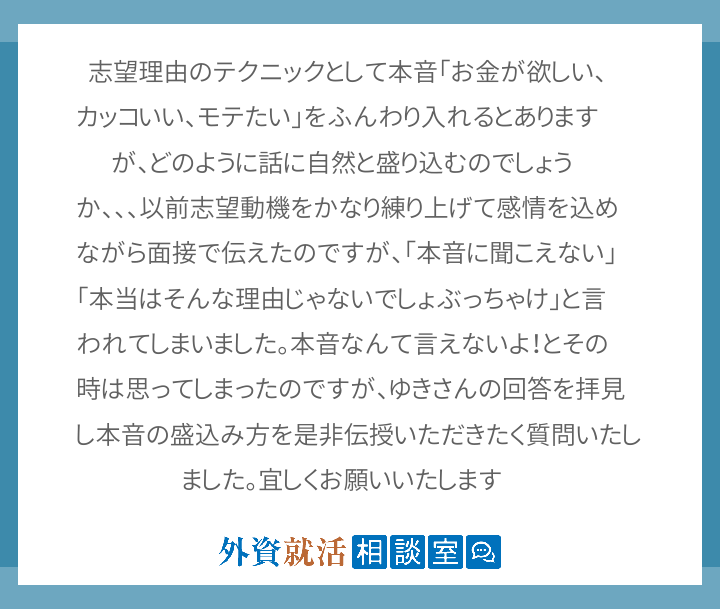 志望理由のテクニックとして本音 お金が欲しい 外資就活相談室
